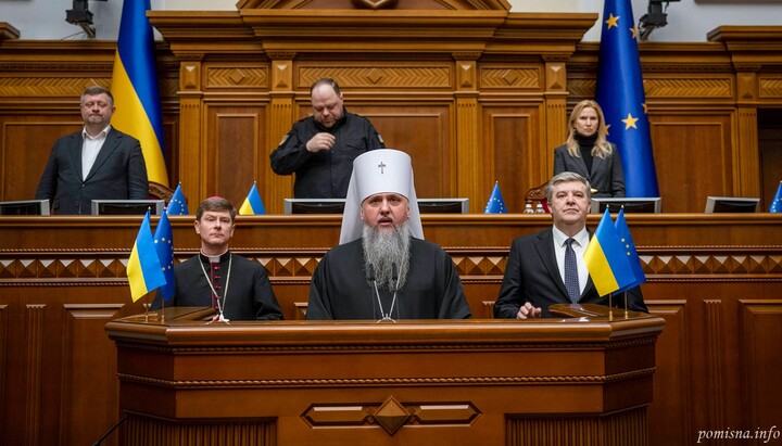 Και αν ο «μητροπολίτης» συνθέτει για την πορεία στη Ράντα προσευχή, στην οποία απαριθμούνται ξεχωριστά ο πρόεδρος, ξεχωριστά η Ράντα, ξεχωριστά η κυβέρνηση, τότε καταλαβαίνουμε – αυτά τα λόγια δεν απευθύνονται καθόλου στον Θεό, αλλά στους ανθρώπους που τον κάλεσαν στη Ράντα: στον Ζελένσκι, στον Στεφάντσουκ, στους βουλευτές κ.λπ.