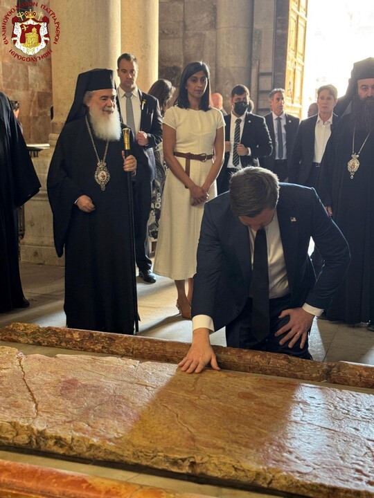 Ο επικεφαλής της Εκκλησίας της Ιερουσαλήμ πραγματοποίησε ξενάγηση στον ναό του Παναγίου Τάφου για τον αντιπρόεδρο των Ηνωμένων Πολιτειών και ευχαρίστησε τη διοίκηση Τραμπ για τις προσπάθειες κατάπαυσης του πυρός στη Γάζα.