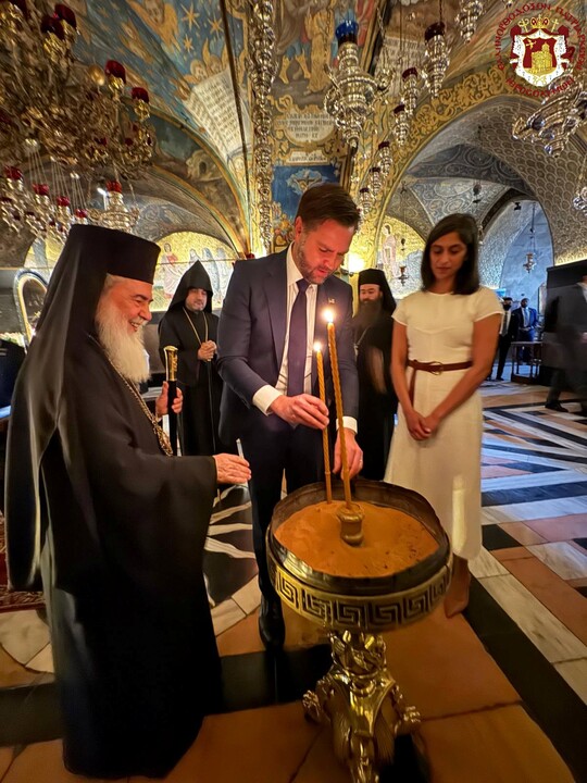 Πατριάρχης Ιεροσολύμων Θεόφιλος δέχθηκε τον αντιπρόεδρο των ΗΠΑ Τζέι Ντι Βανς και τη σύζυγό του Ούσου Βανς στον Ναό του Παναγίου Τάφου.