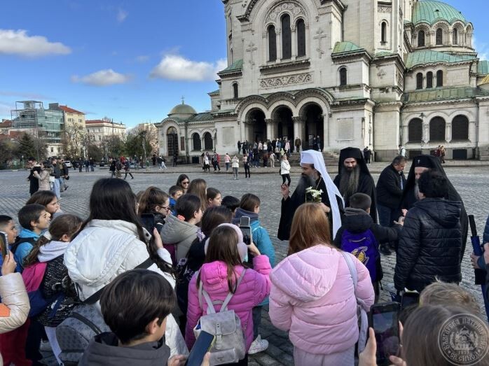 Μετά τη λειτουργία μπροστά από τον καθεδρικό ναό, ο Πατριάρχης ευλόγησε τους μαθητές του 3ου σχολείου «Δημήτρης Τάλεφ» από το Μπλαγκόεβγκραντ, συνομίλησε μαζί τους και κάλεσε τα παιδιά να συμμετέχουν πάντα στη ζωή της εκκλησίας και να απευθύνονται στον Θεό με προσευχή.