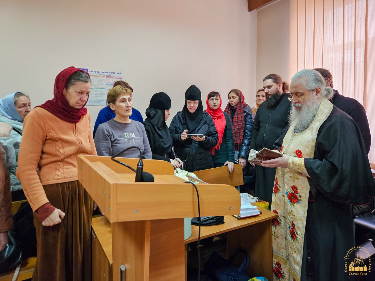 Μητροπολίτης Αρσένιος και πιστοί στο δικαστήριο. Φωτογραφία: Σβιατογκόρσκαγια Λαύρα Μητροπολίτης Αρσένιος και πιστοί στο δικαστήριο. Φωτογραφία: Σβιατογκόρσκαγια Λαύρα