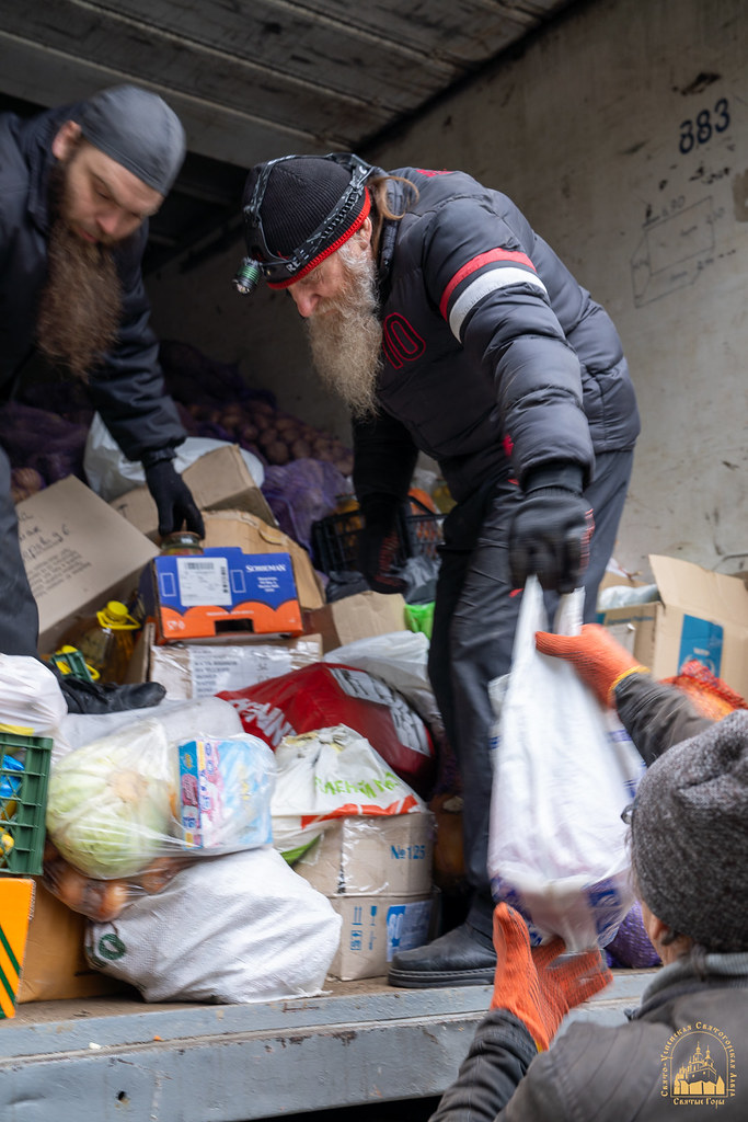 Το φορτίο με τρόφιμα και αντικείμενα παραδόθηκε στη Λαύρα στο πλαίσιο του προγράμματος «Αποστολή Ευσπλαχνίας»; η βοήθεια απευθύνεται σε πρόσφυγες και άτομα που έχουν ανάγκη στη Μονή Σβιατογκόρσκι.