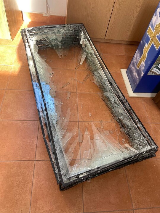 Από τα θραύσματα έσπασαν τα παράθυρα της εκκλησίας, τα οποία χρήζουν αντικατάστασης. Ταυτόχρονα, οι τοπικές αρχές δήλωσαν στην κοινότητα ότι βοηθούν μόνο ιδιωτικές κατοικίες.