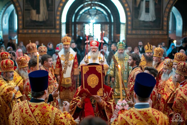 Στον κυβερνώντα αρχιερέα συλλειτούργησαν ο διαχειριστής υποθέσεων της ΟΕΚ μητροπολίτης Μπορίσπολ και Μπροβάρι Αντώνιος, ο επικεφαλής του Πληροφοριακού-Εκπαιδευτικού Τμήματος της ΟΕΚ μητροπολίτης Νέζιν και Πρίλουκι Κλήμης, σύνοδος αρχιερέων και πολυάριθμος κλήρος. Κατά τη θεία λειτουργία έψαλλε η χορωδία των μοναχών της μονής της Παναγίας.