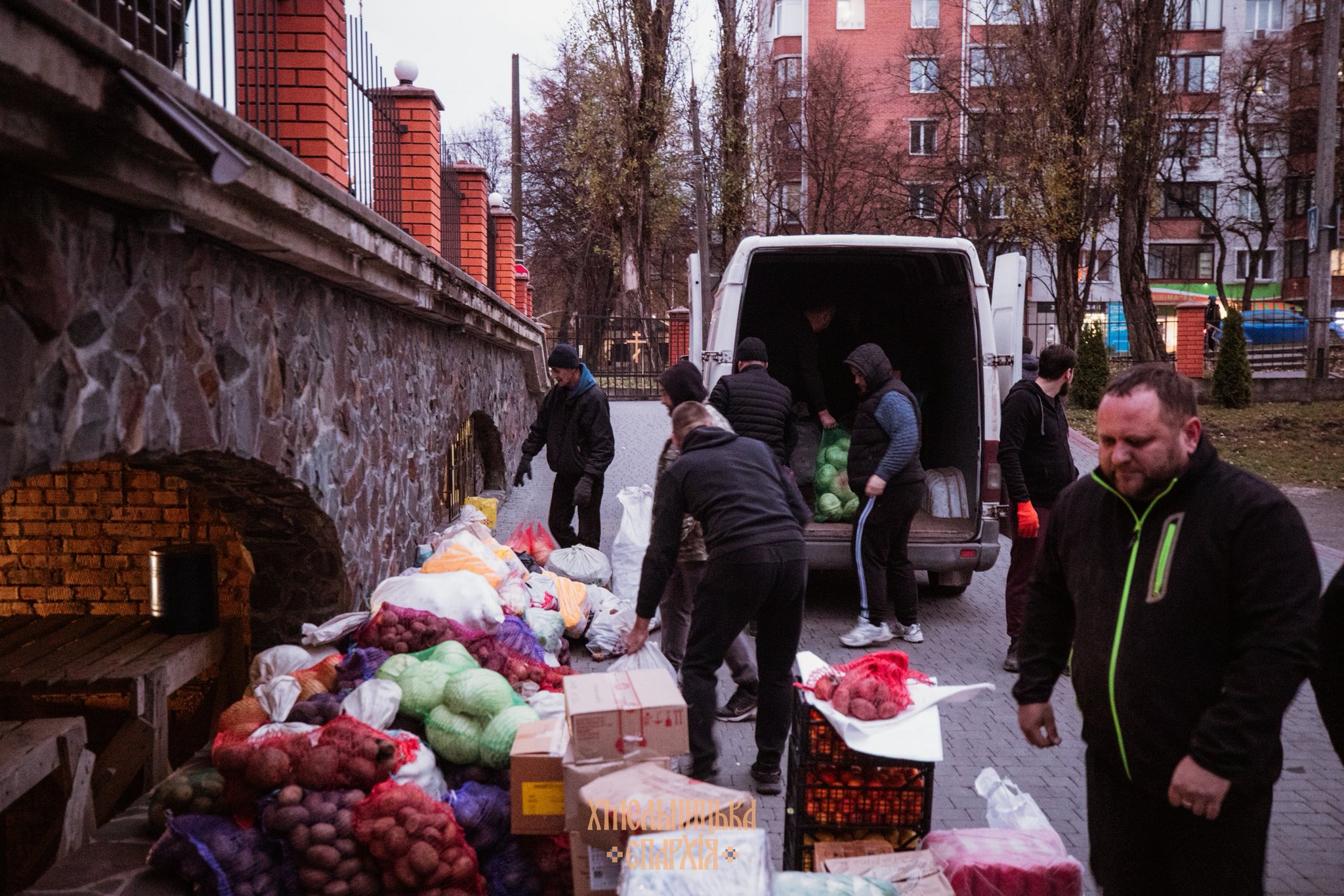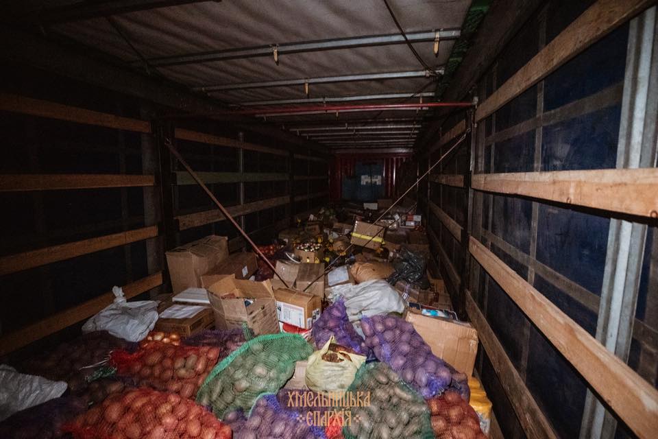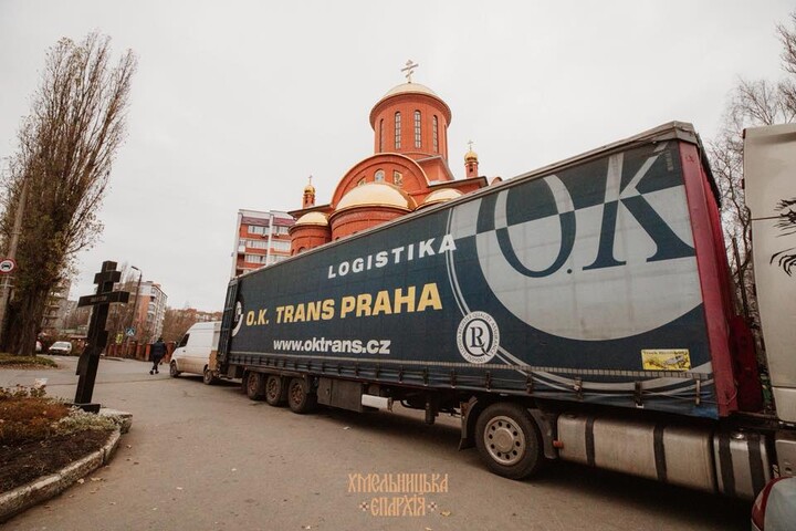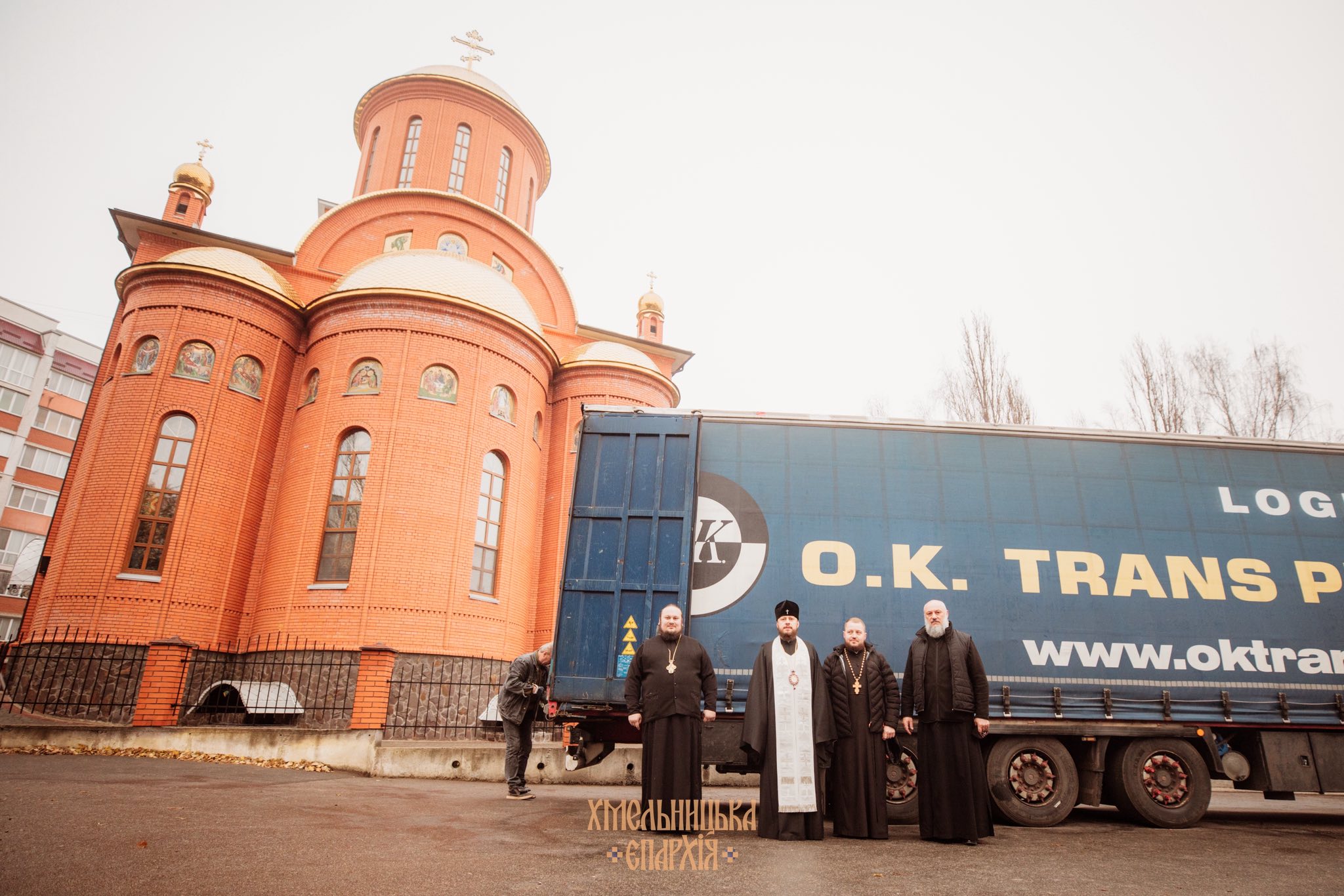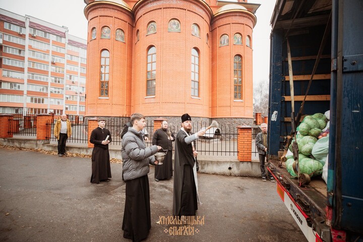Înainte de trimiterea încărcăturii umanitare de pe teritoriul Bisericii Schimbării la Față din Hmelnițki, Mitropolitul Hmelnițki și Starokostiantyniv Viktor a citit o rugăciune pentru binecuvântarea drumului și a stropit încărcătura și vehiculul cu apă sfințită.