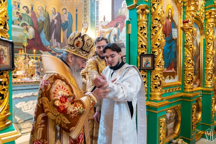 În cadrul Liturghiei, Fericitul Mitropolit Onufrie a hirotonit în diacon pe studentul de anul I al masteratului Academiei Teologice din Kiev, Constantin Kovaliuk. La sfârșitul slujbei, Întâistătătorul a felicitat credincioșii cu ziua de duminică și a binecuvântat turma.