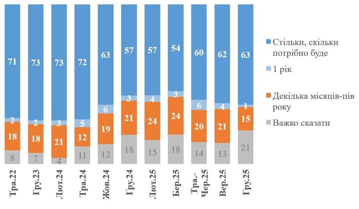 Согласно цифрам КМИС, 63% украинцев готовы терпеть войну «столько, сколько потребуется». При этом, как уверяют социологи, с сентября цифра безусловной поддержки войны только выросла.