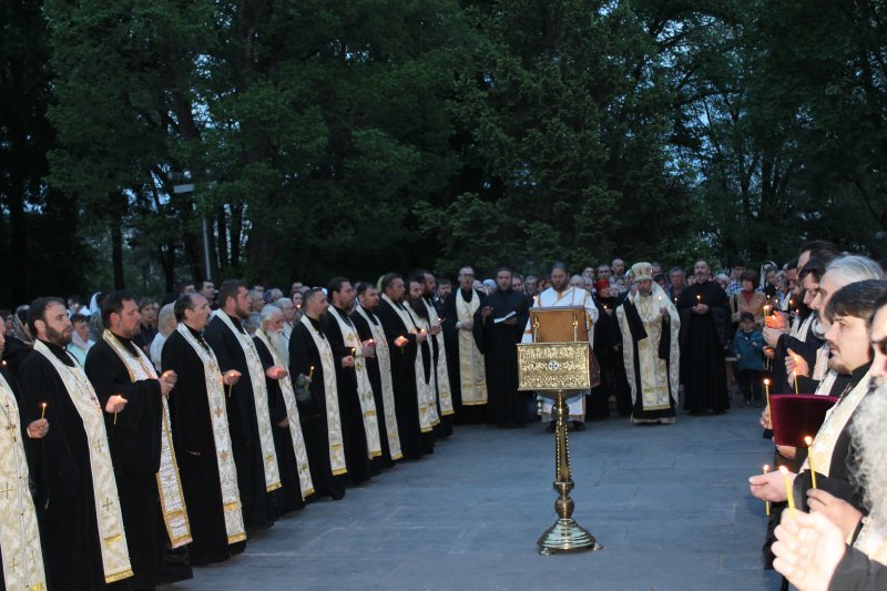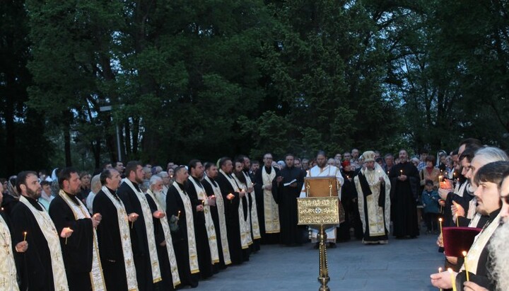 В Одесской епархии митрополит Одесский и Измаильский Агафангел совершил заупокойное богослужение у мемориала погибшим в села Мариновка Беляевского района Одесской области. После завершения панихиды архипастырь поздравил всех с Пасхальными днями и Днем Победы, подчеркнув, что «Пасха и День победы – два больших праздника, которые говорят о победе над грехом и смертью и о победе над фашизмом».