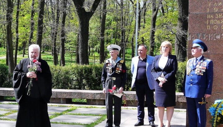 Также в Энергодаре, у Стеллы погибшим воинам Второй мировой войны, по просьбе ветеранов и детей войны духовенство города с благочинным протоиереем Владимиром Иваненко совершили панихиду.
