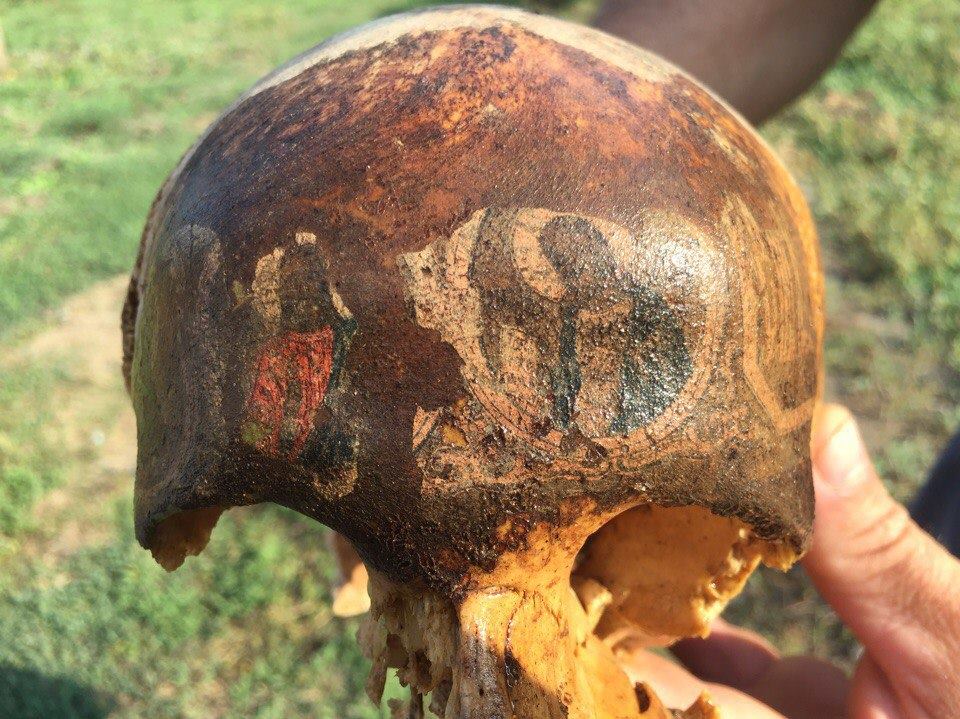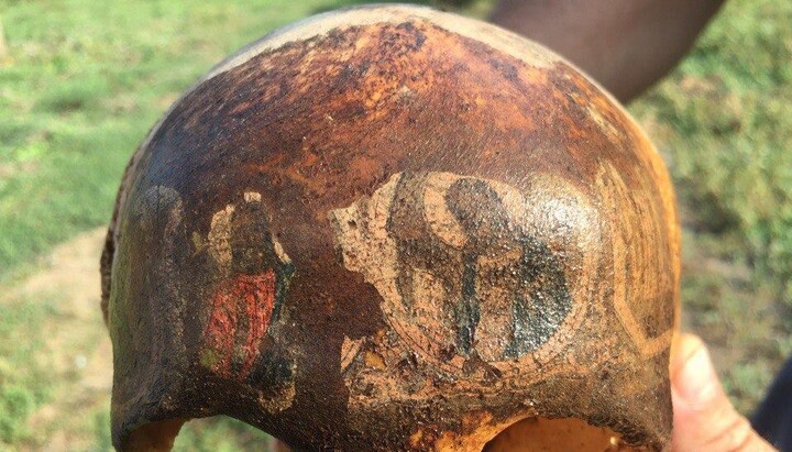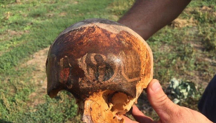 Следопыты обнаружили череп бойца, на котором отпечатались лики святых