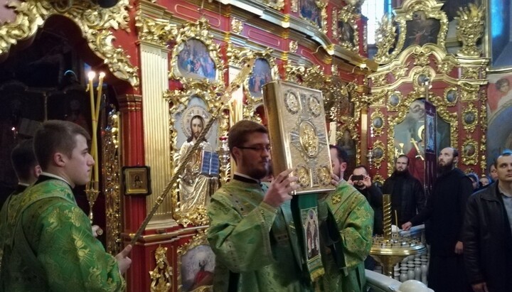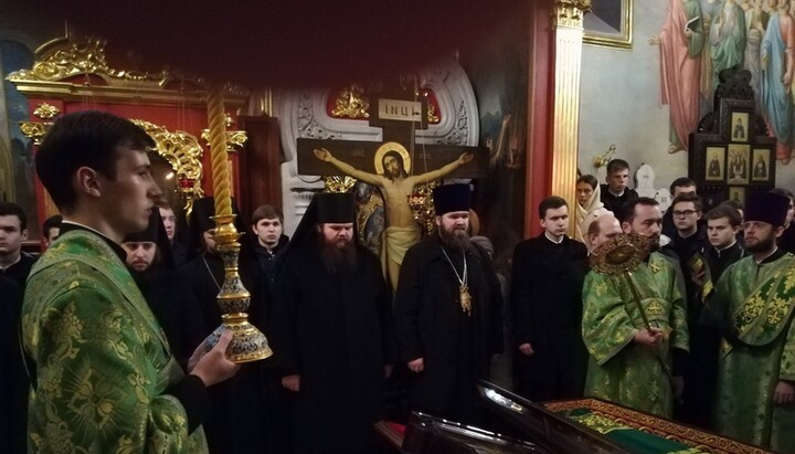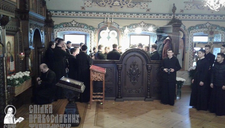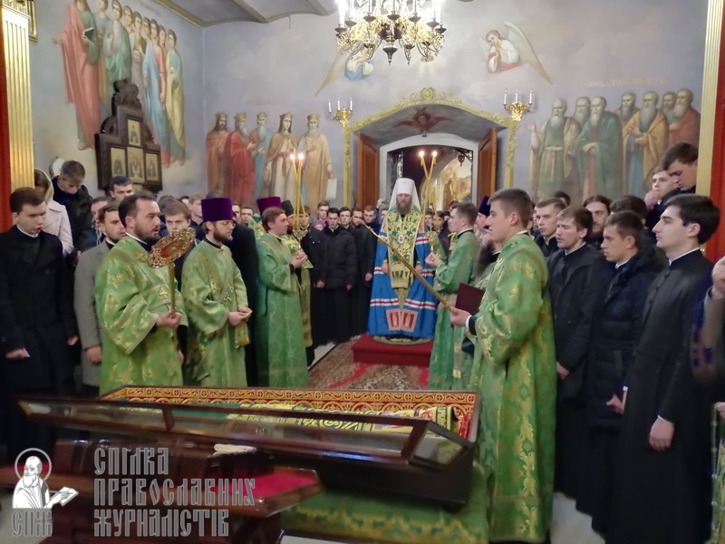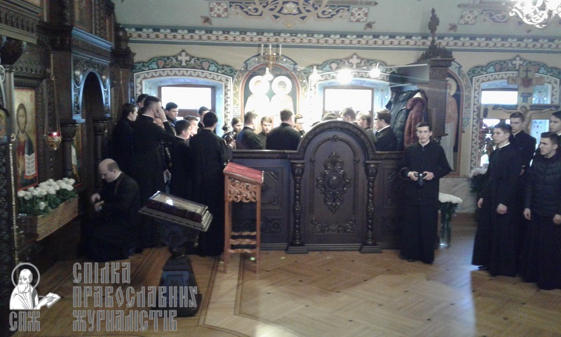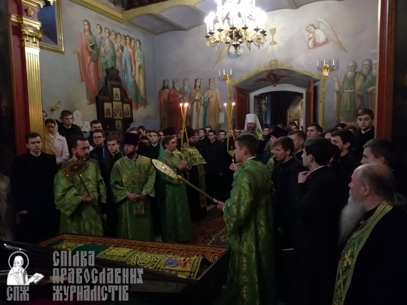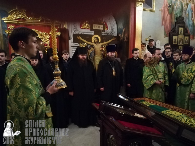 Потом семинаристы во главе с владыкой-ректором, управляющим делами УПЦ митрополитом Антонием, отправились в Крестовоздвиженский храм Лавры, где был совершен праздничный молебен перед мощами преподобного Нестора Летописца. По завершении молебна каждый мог приложиться к мощам святого и попросить у него молитвенного заступничества.
