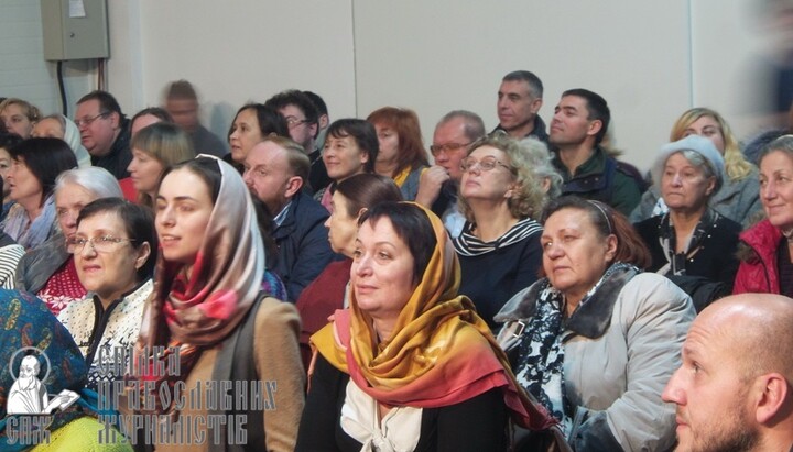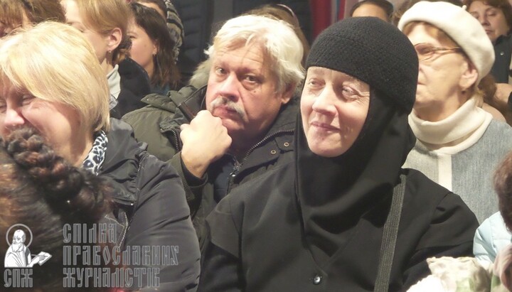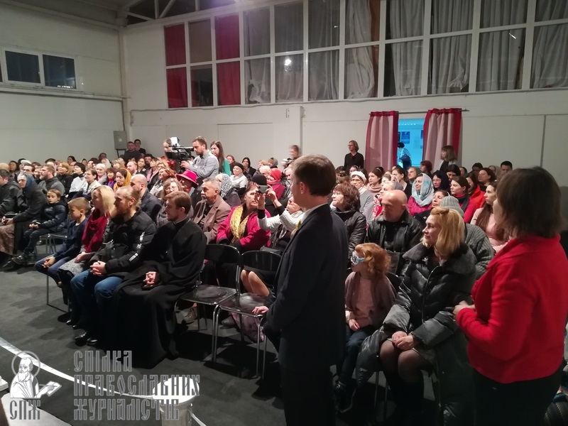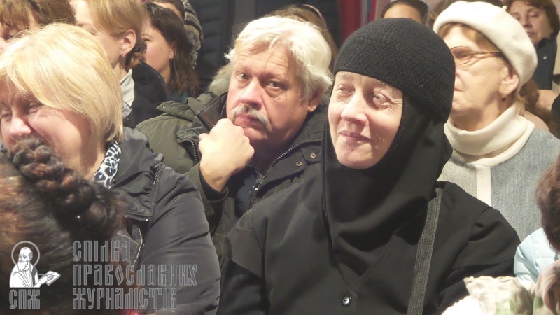 В сравнительно небольшом зале галереи собралось рекордное количество гостей - более 270 человек. Перед началом просмотра к собравшимся обратился Председатель общины Кафедрального собора УПЦ епископ Бородянский Варсонофий. Владыка передал благословение от Предстоятеля УПЦ, настоятеля Кафедрального собора Блаженнейшего Митрополита Киевского и всея Украины Онуфрия, и пожелал, чтобы «сегодняшний просмотр фильма помог в вашей жизни и чтобы вы почерпнули из него много полезного».