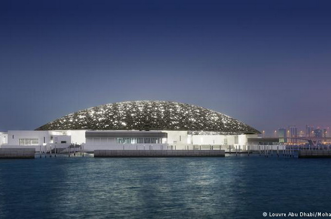 «Лувр Абу-Даби», расположенный на острове Саадият (Остров Счастья) близ Абу-Даби – первый музей за пределами Франции, который получил название «Лувр». За право использовать название до 2037 года эмират заплатил около миллиарда евро. Проект здания музея площадью около 24 тыс. квадратных метров создал французский архитектор Жан Нувель. Строение не имеет фасада и накрыто огромным куполом, пропускающим отдельные лучи солнца.