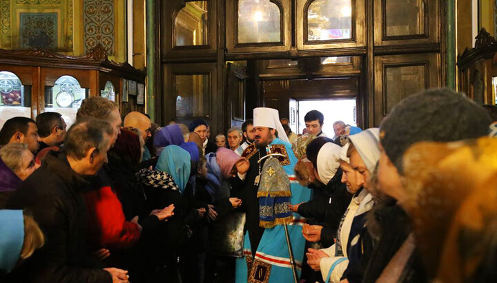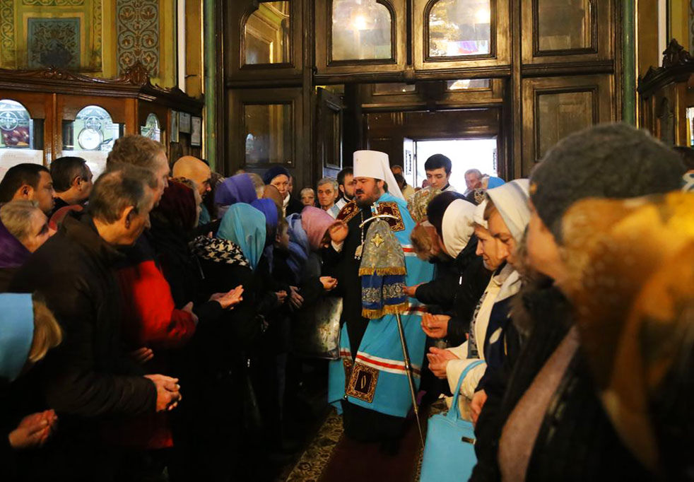 По окончании богослужения духовенство и верующие прошли крестным ходом в Свято-Покровский мужской монастырь, где совершили славление Пресвятой Богородицы.