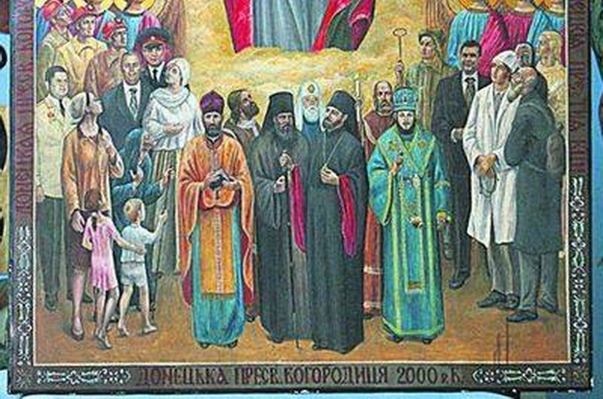В Донецкой области, в одном из храмов Украинской греко-католической церкви, в течение многих лет находится икона с изображением бывшего президента Виктора Януковича и видного члена «Партии регионов» Владимира Рыбака.