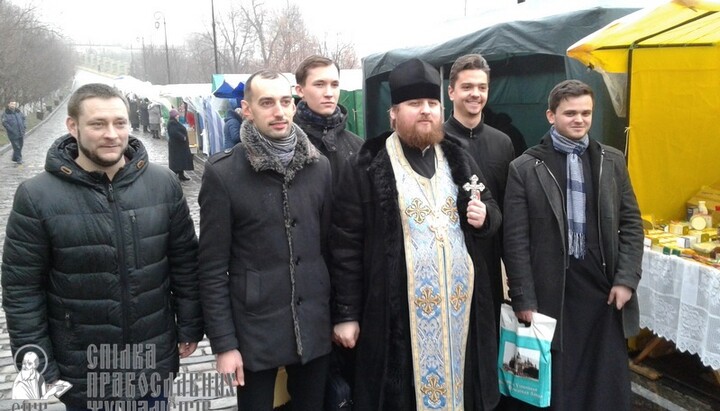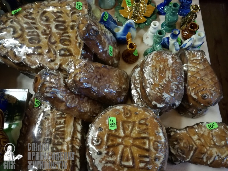 Перед открытием представитель оргкомитета иеромонах Глеб совершил молебен и поздравил участников и гостей ярмарки с началом работы, а после окропил святой водой всех присутствующих и представленную здесь продукцию.
