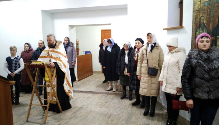 Цокольный этаж – это единственное, что уцелело от уникального 23-метрового храма из волынской сосны. Община приняла решение восстановить храм и обустроила для богослужений цокольный этаж. Планируется, что окончательно храм будет восстановлен после полного прекращения боевых действий на Донбассе.