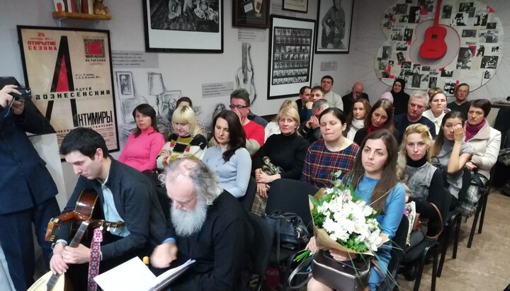 Зрители концерта имели возможность встретиться с почетным гостем – поэтом и автором-исполнителем, священником-бардом Романом Барановским. Он уже не в первый раз выступает на фестивале, и здесь, в галерее, прочитал свои стихи, наполненные глубоким философским смыслом, а также спел несколько авторских песен.