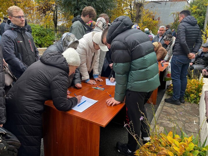 Прихожане Пантелеимоновского храма после воскресной службы провели собрание и документально подтвердили решение оставаться в лоне УПЦ.