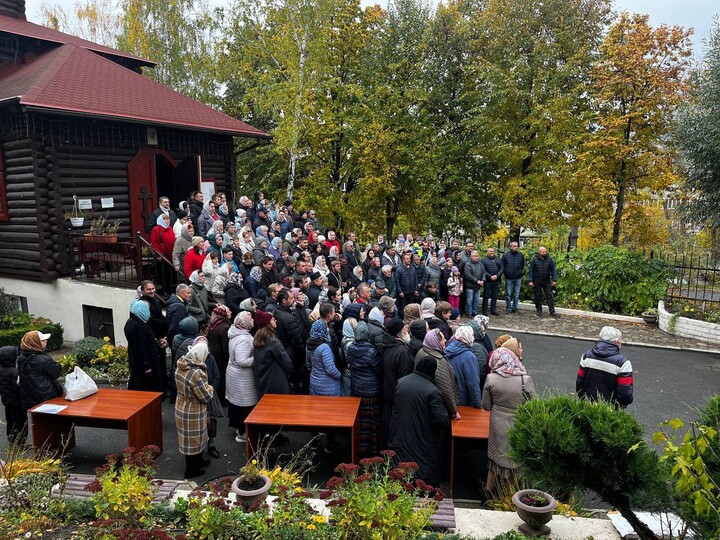 Собрание состоялось после воскресного богослужения в связи с рядом тревожных событий. Причиной стала фальсификация документов на святыню со стороны рейдеров ПЦУ, а затем визит клирика ПЦУ Босенко в церковь. Верующие опасаются, что активисты структуры Епифания готовят силовой захват их храма.