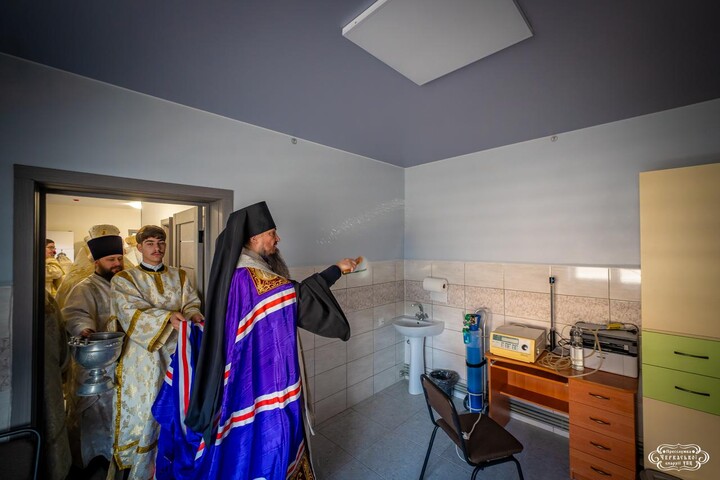 Епископ Антоний вместе с директором центра, матушкой Ольгой Иванусой перерезали красную ленту, после чего владыка совершил молебен, освятил все кабинеты учреждения и благословил всех сотрудников. В этом медицинском центре будут лечить малообеспеченных людей.