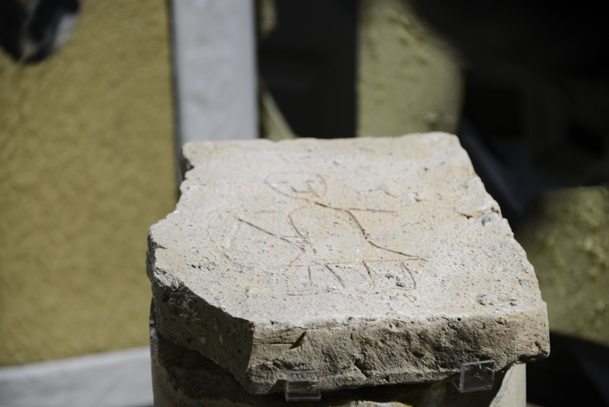 Фрагмент стены с граффити выставили рядом с древнерусским граффити XI века.
