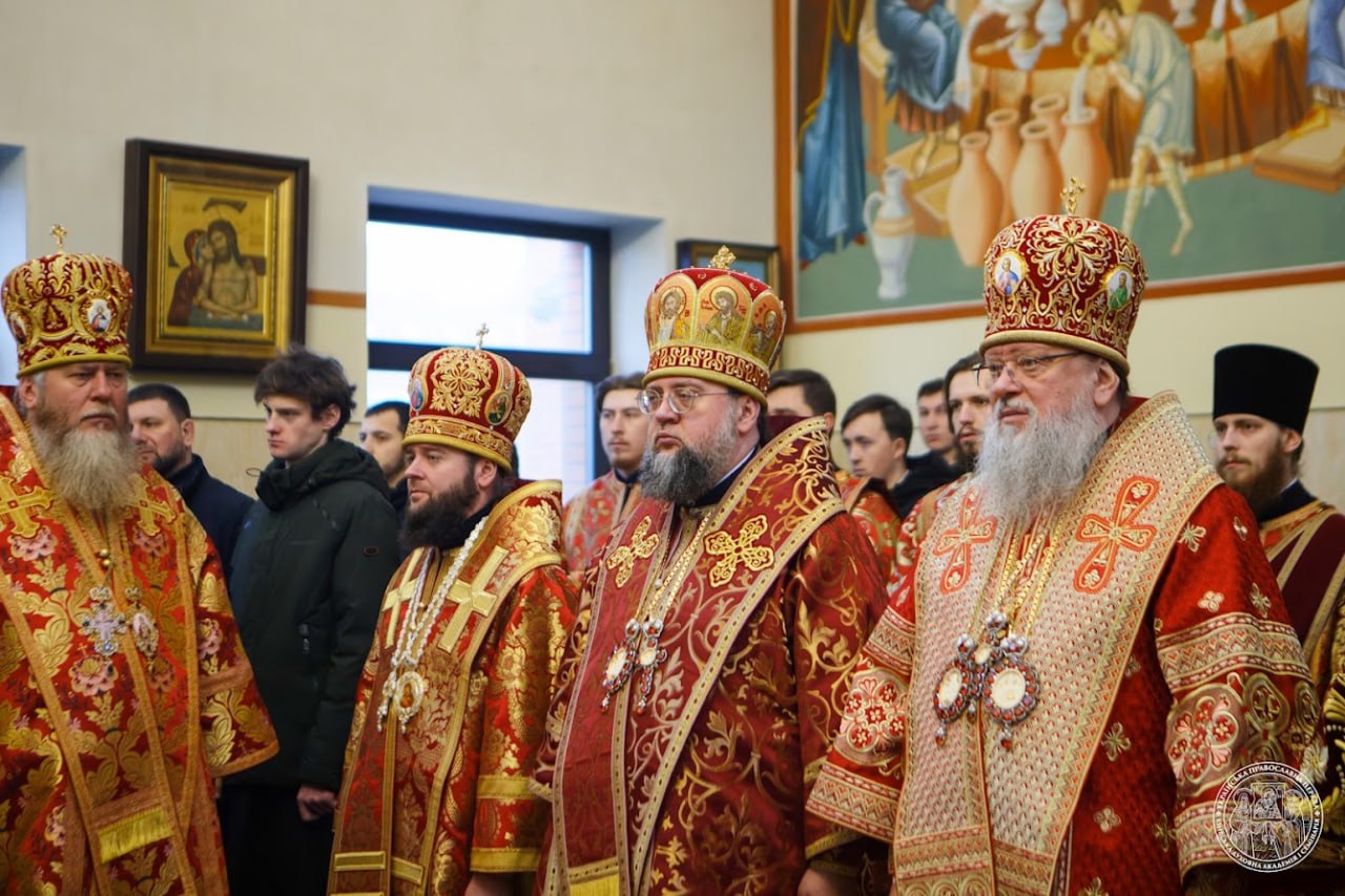 За богослужением Блаженнейшему сослужили: председатель Отдела внешних церковных связей УПЦ митрополит Черновицкий и Буковинский Мелетий, председатель Учебного комитета при Священном Синоде УПЦ митрополит Нежинский и Прилукский Климент, ректор Киевской духовной академии и семинарии архиепископ Белогородский Сильвестр, проректор по воспитательной работе архиепископ Згуровский Амвросий, архиепископ Ирпенский Лавр, архиепископ Бородянский Марк, архиепископ Бышевский Кирилл, проректор по учебно-методической работе епископ Батуринский Пантелеимон, заведующий аспирантурой Киевской духовной академии епископ Барышевский Филарет.