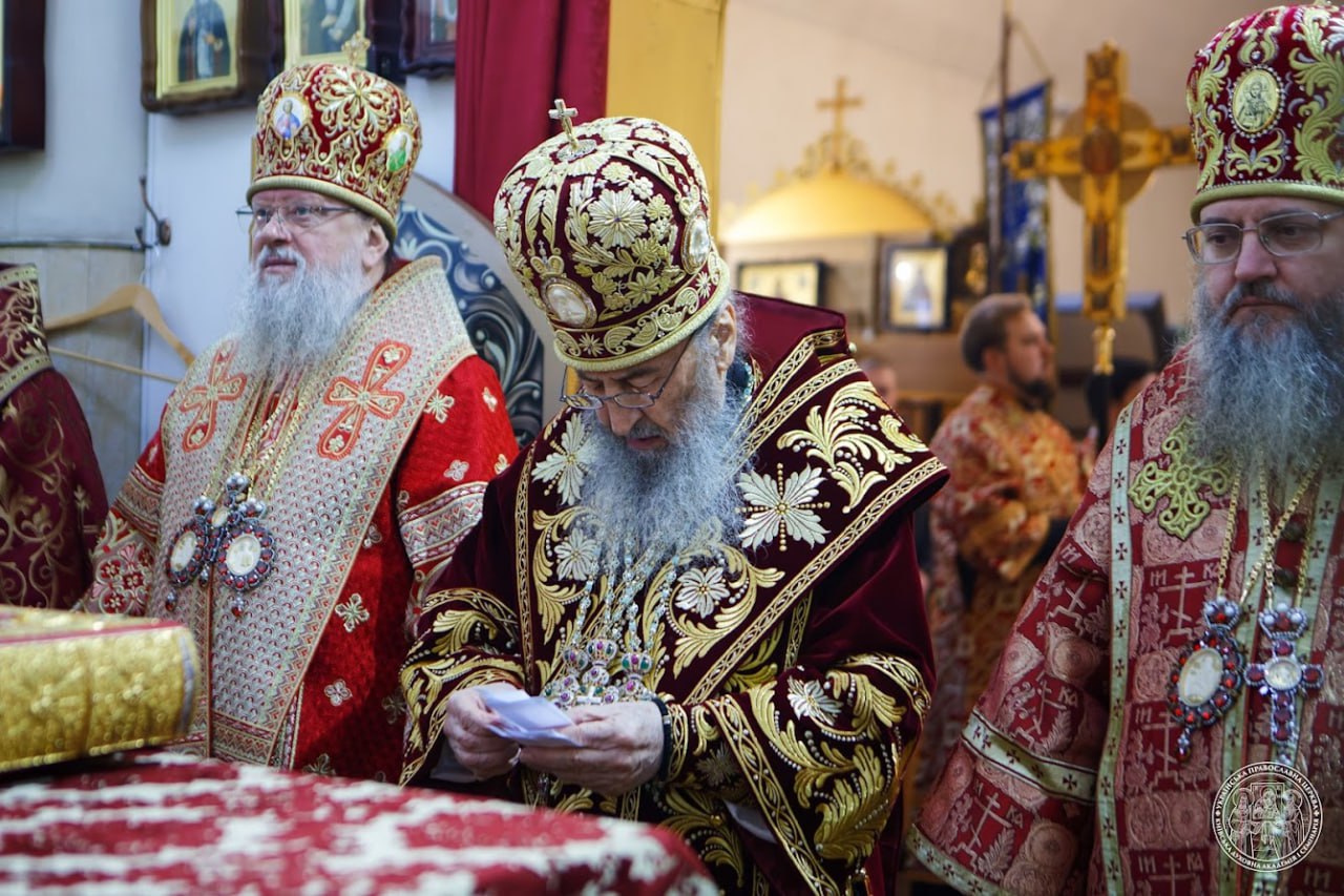 По окончании литургии перед иконами преподобного Иоанна Дамаскина и святой великомученицы Варвары совершили чин славления. Блаженнейший владыка поздравил всех с престольным праздником и призвал на паству Божие благословение.