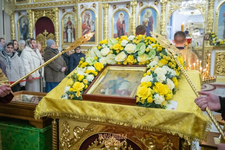 Святыню доставили в Николаевский собор города с благословения наместника Почаевской лавры.