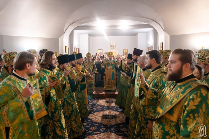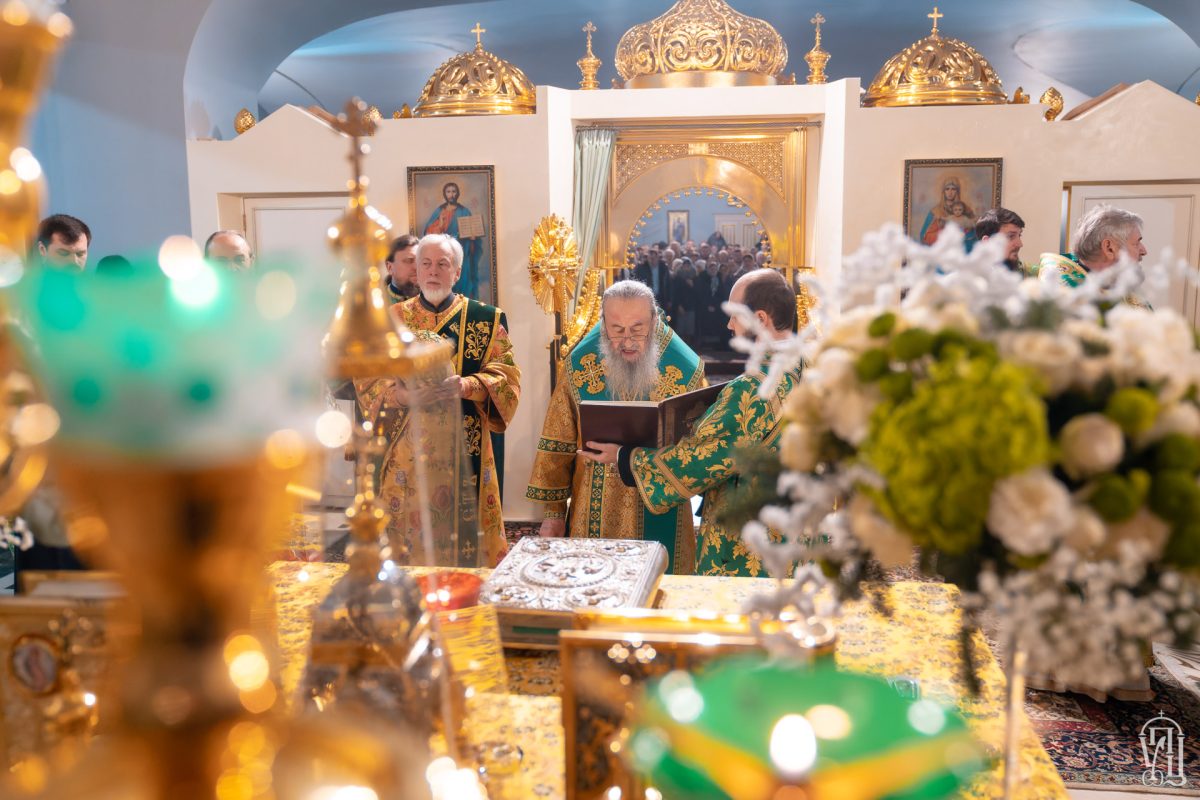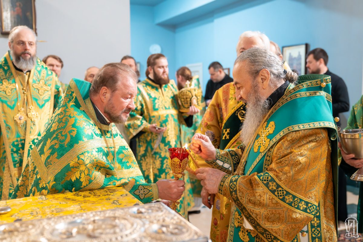 Блаженнейшему сослужили управляющий делами УПЦ митрополит Бориспольский и Броварской Антоний, митрополит Полтавский и Миргородский Филипп, архиепископ Вишневский Спиридон, архиепископ Ирпенский Лавр, архиепископ Бородянский Марк, а также духовенство собора и приглашенные клирики.