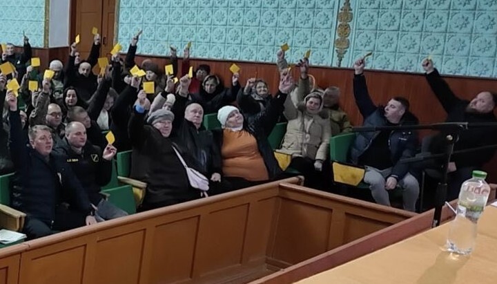 21 декабря 2025 г. в селе Кузьмин Хмельницкого района в помещении Дома культуры прошло собрание по вопросу перевода храма УПЦ Рождества Пресвятой Богородицы в ПЦУ. Об этом сообщает пресс-служба Хмельницкой епархии в Телеграм-канале.