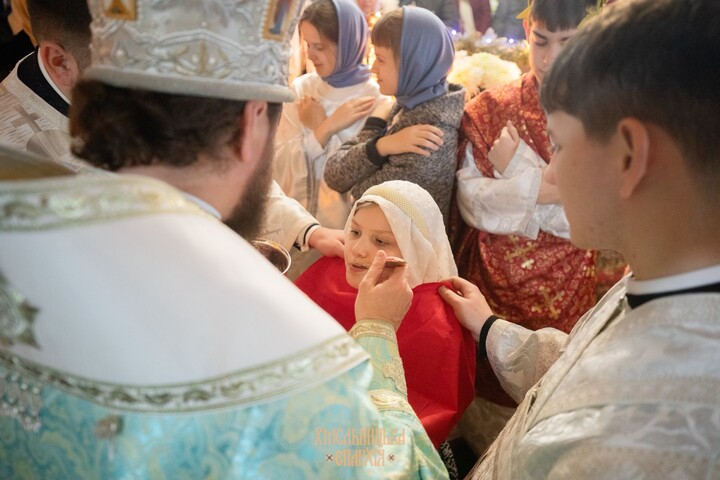 Владыке сослужили секретарь епархии протоиерей Александр Рыбчинский, благочинный Староконстантиновского округа протоиерей Василий Дронюк, архимандрит Феодосий (Слободянюк) и клирики епархии.