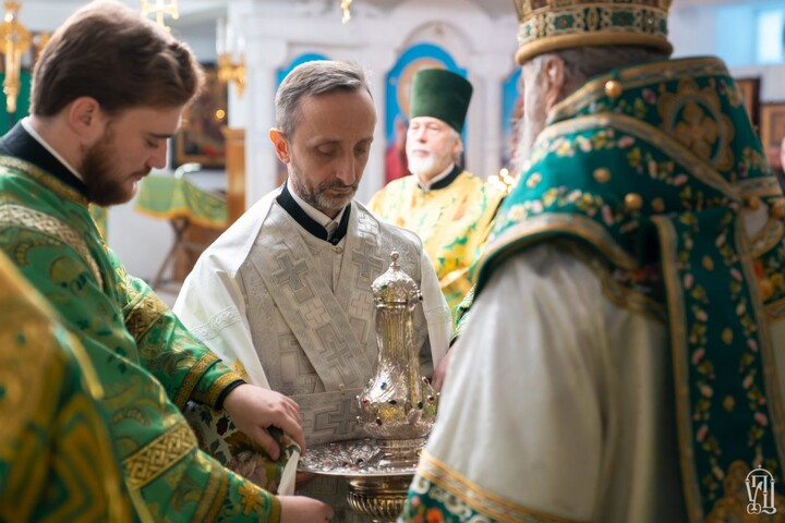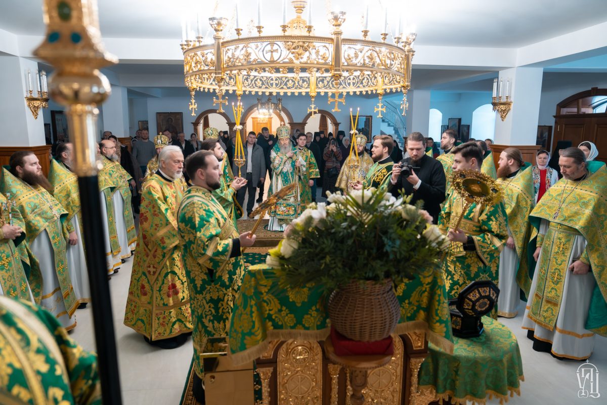 За Литургией были вознесены молитвы о мире на украинской земле, о благословении Господнем украинскому народу, об избавлении от врага и о воинах-защитниках. В ходе богослужения Блаженнейший Митрополит Онуфрий рукоположил во диакона Артемия Надворного, который будет нести служение в храме во имя преподобного Феодора Освященного в Киеве.