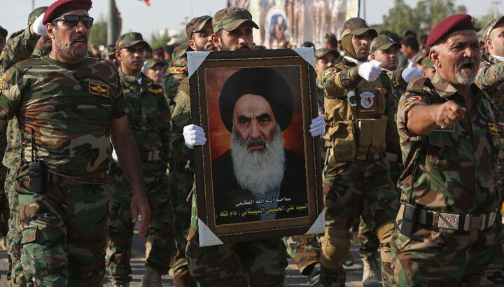 Шиитские бойцы Ирака с портретом шиитского лидера Ирака Али ас-Систани. Фото: Middle East Online Шиитские бойцы Ирака с портретом шиитского лидера Ирака Али ас-Систани. Фото: Middle East Online