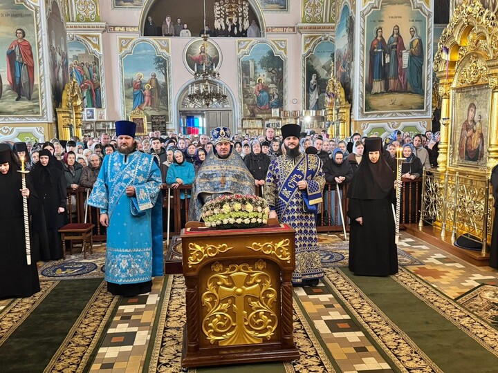 В храме за Литургией молились настоятельница Корецкой обители игуменья Парфения с сестрами, настоятельницы других женских монастырей, а также многочисленные прихожане и паломники, прибывшие почтить чудотворный образ Пресвятой Богородицы.
