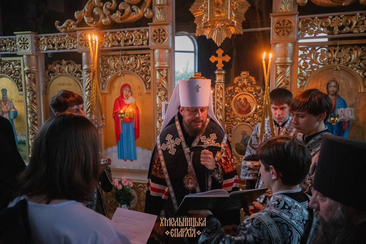 Постриг послушника Павла Лыся совершили после уставного вечернего богослужения в монастырском храме. За богослужением молились духовник епархии архимандрит Пахомий (Дидык), наместник обители архимандрит Феодосий (Слободянюк), духовенство епрархии.