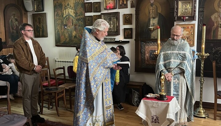 О. Алексей Уминский в Париже провел обряд освящения статуэтки «Оскар». Фото: Фейсбук Лошака О. Алексей Уминский в Париже провел обряд освящения статуэтки «Оскар». Фото: Фейсбук Лошака