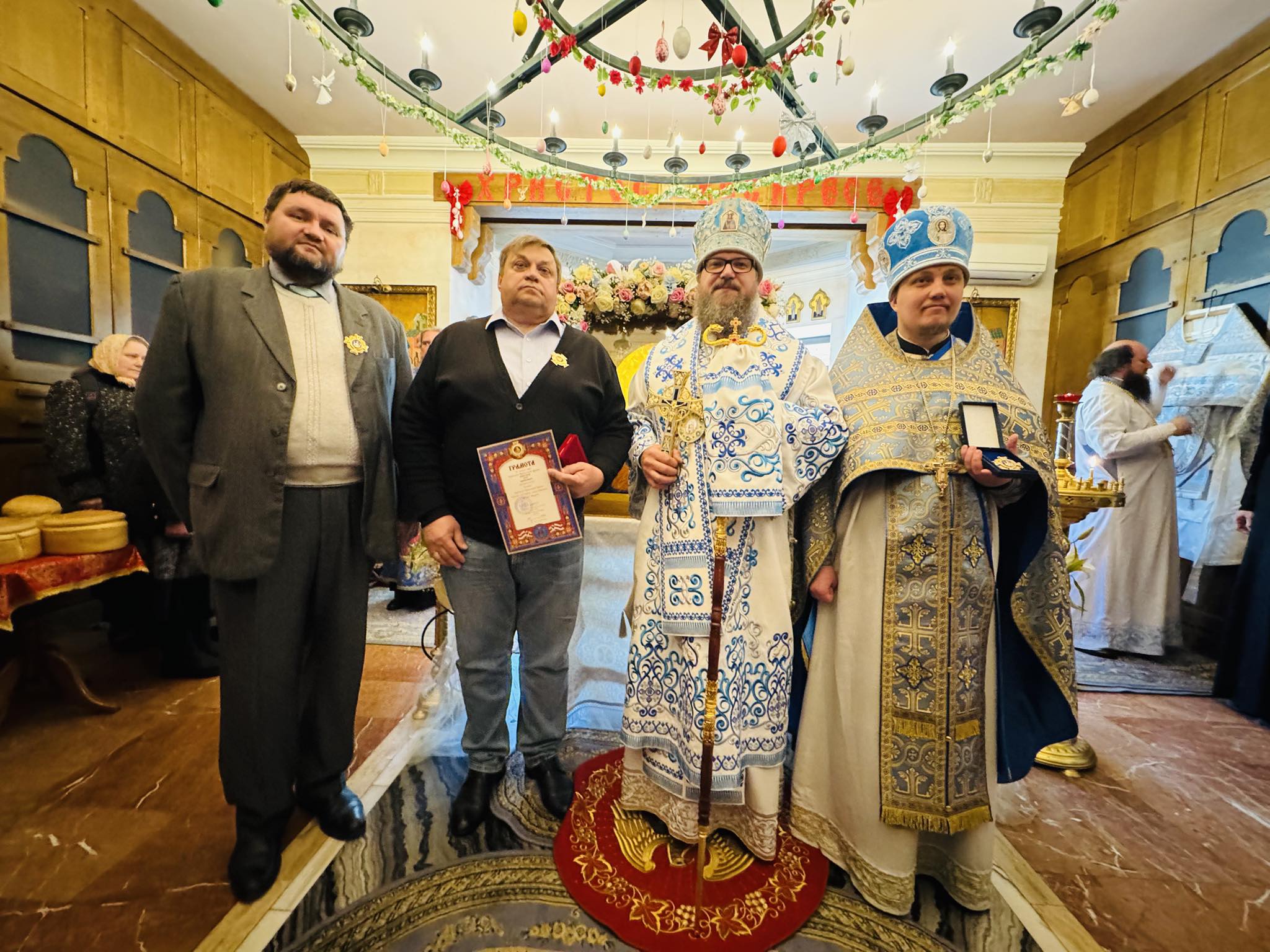 После проповеди епископ Климент вручил церковные ордена юристам и правозащитникам, которые представляют интересы обители. Награды получили протоиерей Никита Чекман и Олег Поваляев.