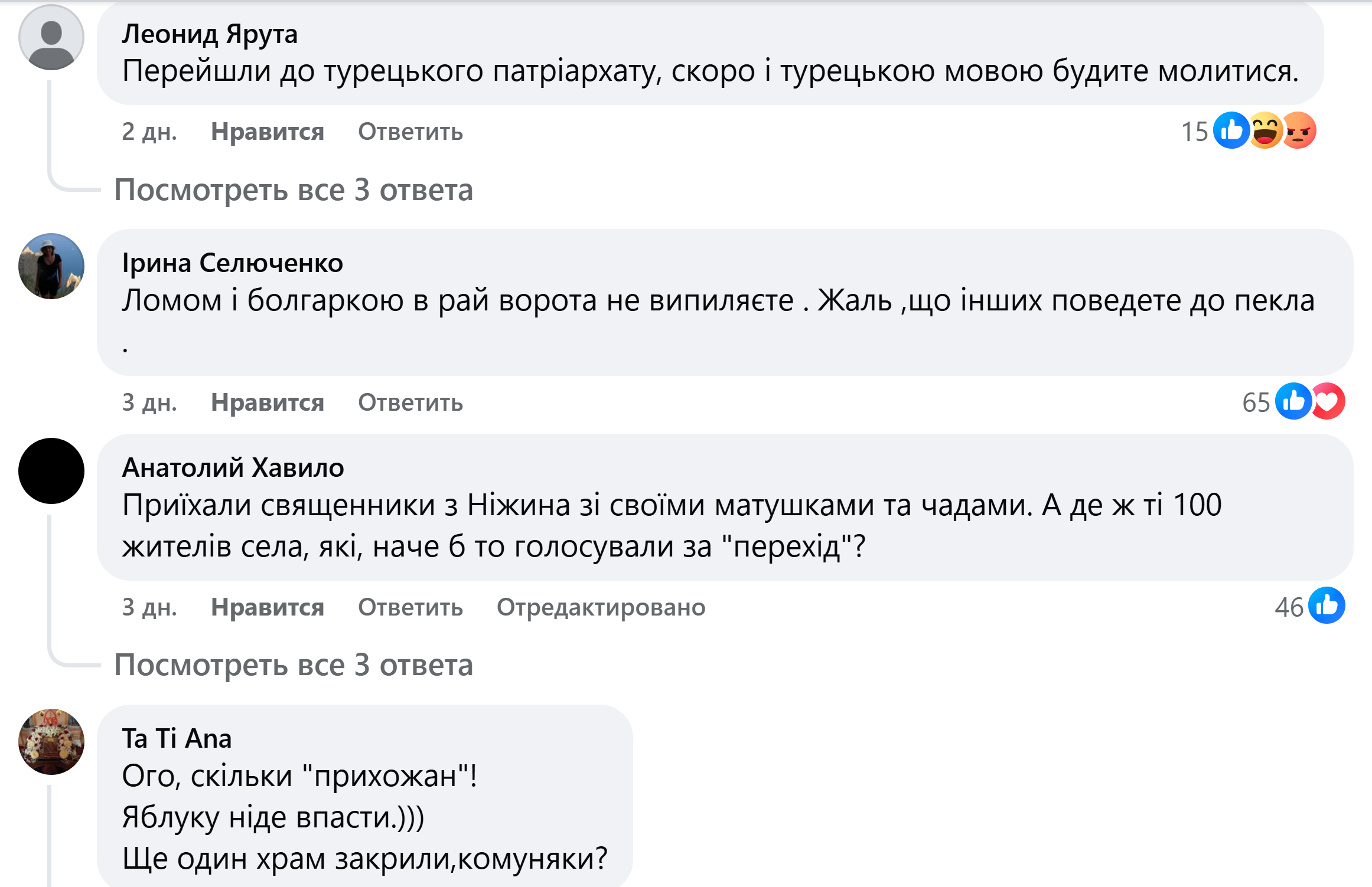 «Приехали священники из Нежина со своими матушками и чадами. А где же те 100 жителей села, которые, вроде бы голосовали за "переход"?», – интересуется Анатолий Хавило.