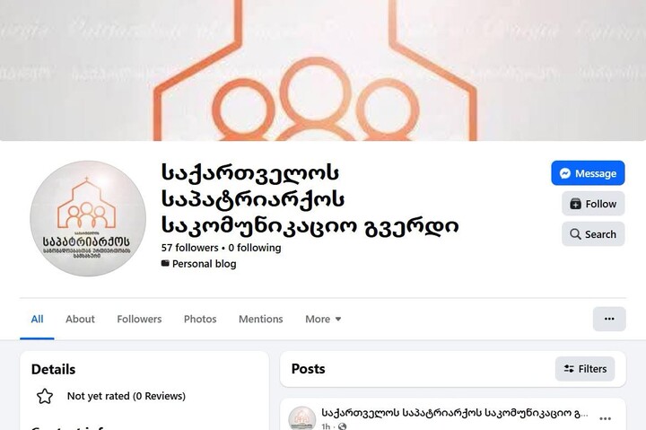 Речь идет о странице с названием «საქართველოს საპატრიარქოს საკომუნიკაციო გვერდი», на которой неправомерно используется логотип службы по связям с общественностью Патриархии.
