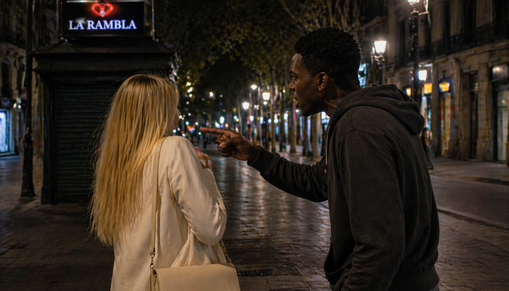 Иллюстративное изображение мигранта и женщины на улице Ла-Рамбла в Барселоне. Фото: открытые источники Иллюстративное изображение мигранта и женщины на улице Ла-Рамбла в Барселоне. Фото: открытые источники