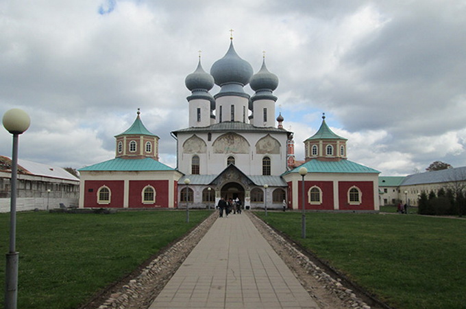 Тихвінський монастир був заснований у 1560 році для зберігання Тихвінської ікони Божої Матері, чудесно знайденої у 1383 році: образ з'явився рибалкам над Ладозьким озером, поряд зі Старою Ладогою. В середині 1920-х обитель була закрита і розорена. Під час війни гітлерівці вивезли ікону. Вона потрапила до Прибалтики, потім до Німеччини, а звідти до США. У 1995 році монастир був переданий Руській Православній Церкві, розпочалося відновлення Успенського собору. Головна святиня обителі була повернута до Росії в 2004 році.