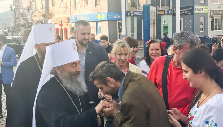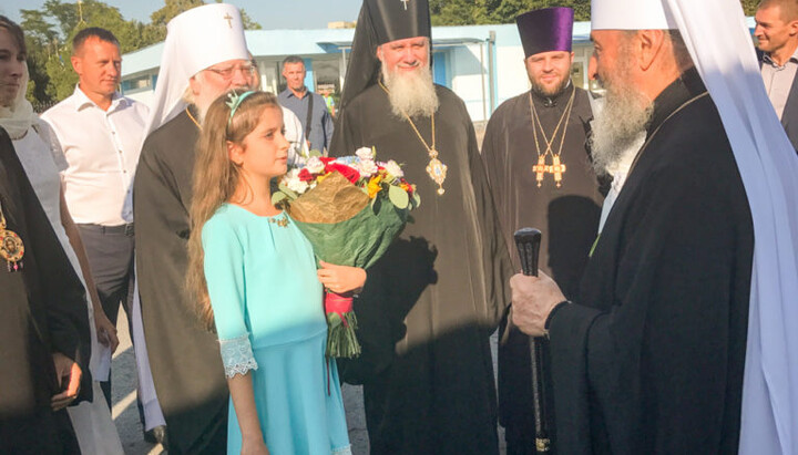 В аеропорту Ужгорода Предстоятеля зустріли архієреї УПЦ, мер міста і фольклорний ансамбль «Криниченька», що діє при Іршавському будинку культури.