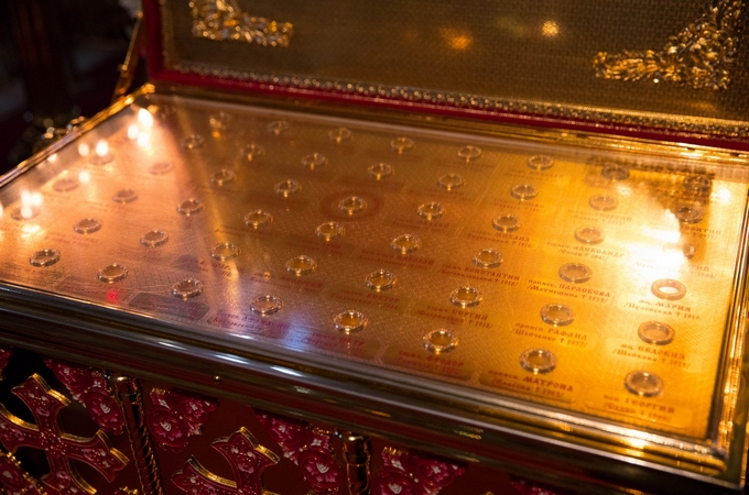 У ковчезі зберігаються мощі 54 святих новомучеників і сповідників: 15 з них були архіпастирями, 17 кліриками, 16 – ченцями і шестеро – мирянами.