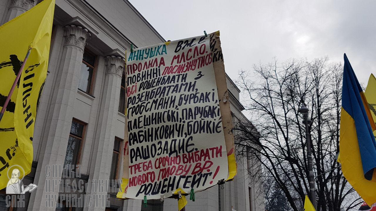 16 січня близько 9:30 під стінами Верховної Ради України розпочалась акція «Стоп реванш». Як передає кореспондент СПЖ, мітингувальники у тому числі вимагають прийняти антицерковні законопроекти. При цьому поліцейських для охорони порядку зібралося більше, ніж самих протестуючих.