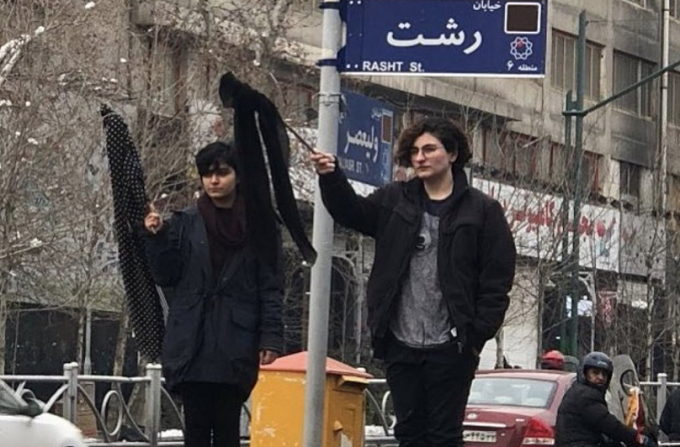 Іранські жінки на акції зняли хіджаб та тримали його на палицях на знак протесту проти обов'язкового носіння хустки.