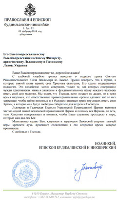 5 лютого архієпископ Львівський і Галицький Філарет отримав листа від єпископа Пакрацко-Славонського Іоанна (Сербська Православна Церква).