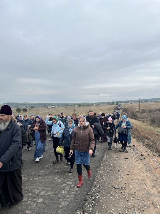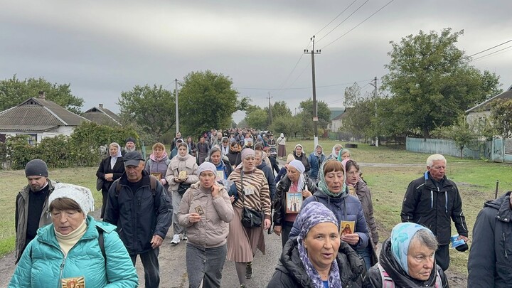 Сотні вірян і священників пройшли з молитвою з села Ганнівка до Хресто-Воздвиженського храму села Іскрівка, де зберігаються мощі священномученика Миколая Іскрівського.