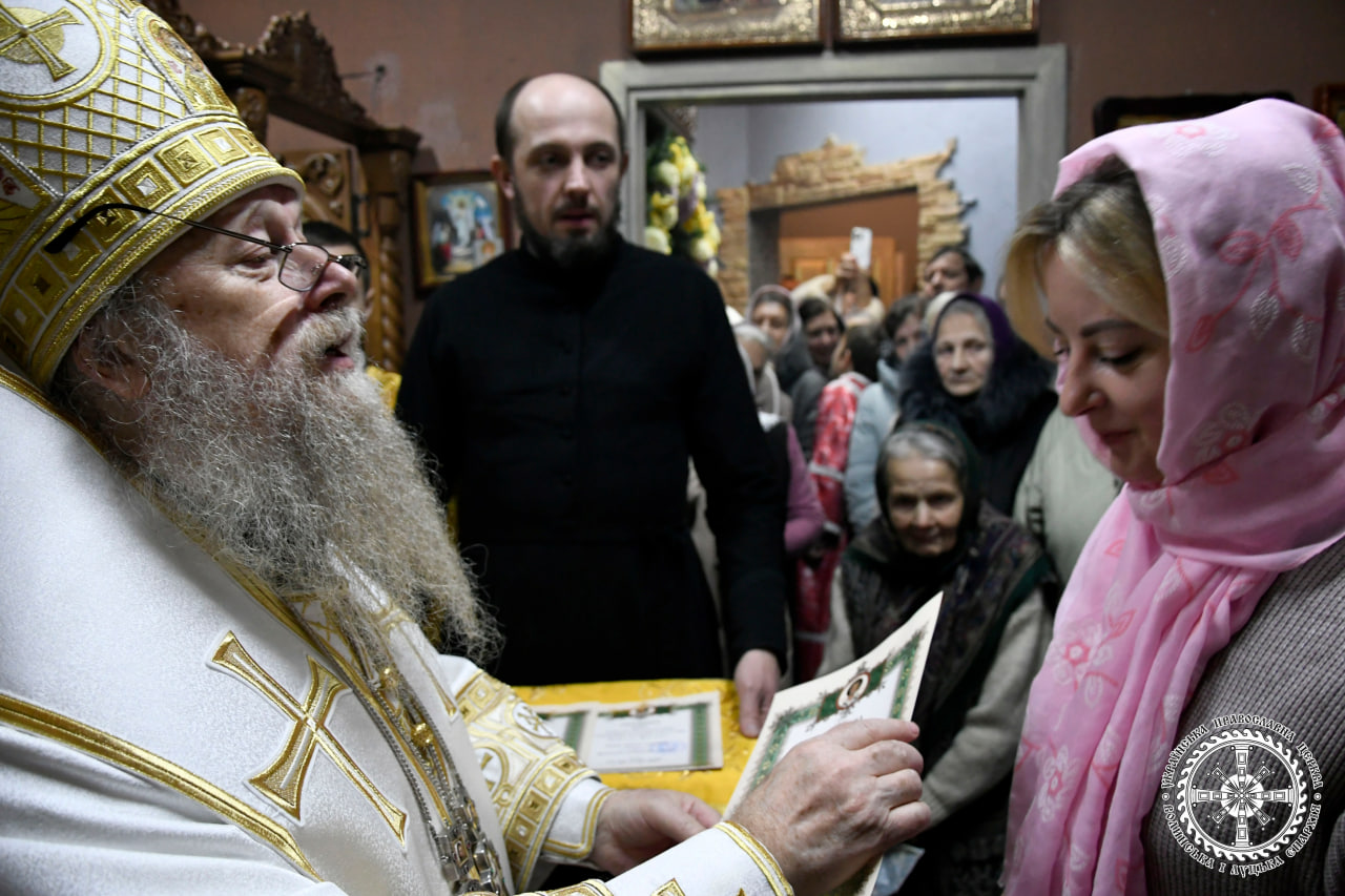 Після закінчення богослужіння перед іконою святителя Спиридона звершили чин славослів'я. Управляючий єпархією звернувся до вірян з архіпастирським словом, привітав громаду з престольним святом і вручив активним парафіянам парафіяльні грамоти.