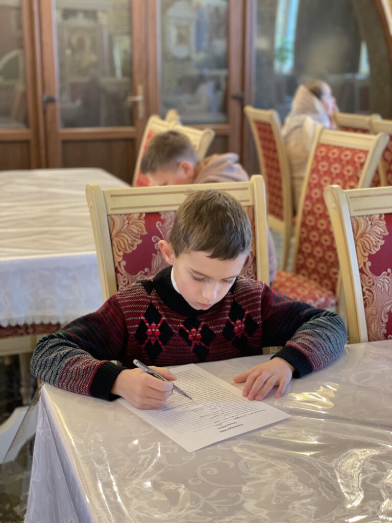 Учасники були розділені на вікові категорії, кожна отримала завдання з знання Священного Писання. Після письмової частини діти спілкувалися за спільною трапезою, підготовленою сестрами Георгіївського подвір'я.